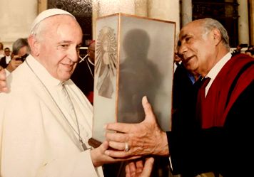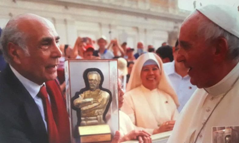 La figura de Walter Luis entregando al Papa Francisco el Galardón para ser parte de las maravillas que atesora la Casa de Pedro. Pero Walter no está solo, en primer lugar, y siempre está su hija, Natalia, que con una humildad extraordinaria apoya y respalda celosamente la obra de su padre.